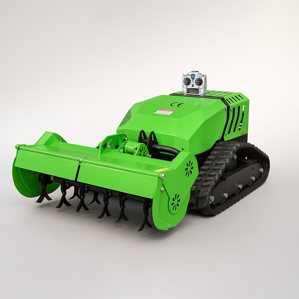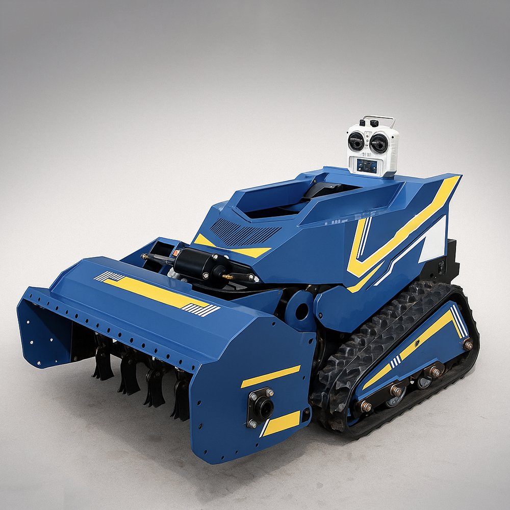 This remote-control flail mower features a high-performance motor and modular flail blades, engineered for efficient cutting on large lawns and challenging terrains. Equipped with an intelligent remote control system, it uniform grass cutting with minimal operator effort. The durable Steel chassis flail structure and adjustable cutting height ensure both efficiency and turf protection, for professional landscaping, farms, and industrial grounds.
